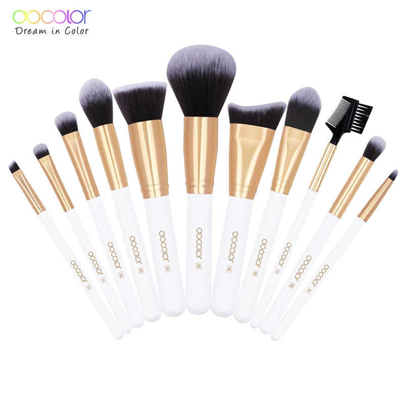 Docolor 11Pcs White Makeup Brushes Set Foundation Powder Contour Blushes Make up brush Synthetic ha