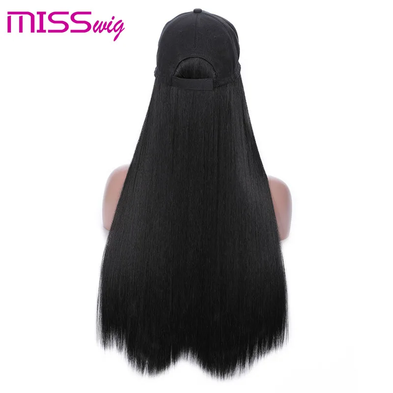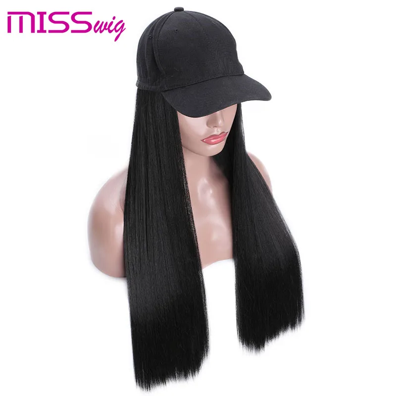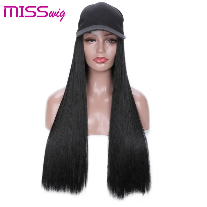 Hot Sale MISSWIG Long Straight Hat Wig Black Brown 2color Available Wigs And Hat Naturally Connect Synthetic