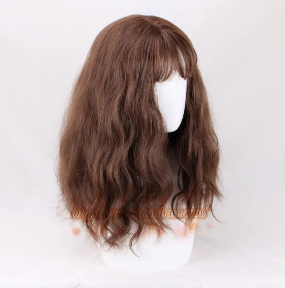 Movie Hermione Jean Granger Brown Wavy Curly Synthetic Hair Cosplay Costume Wigs + Wig Cap