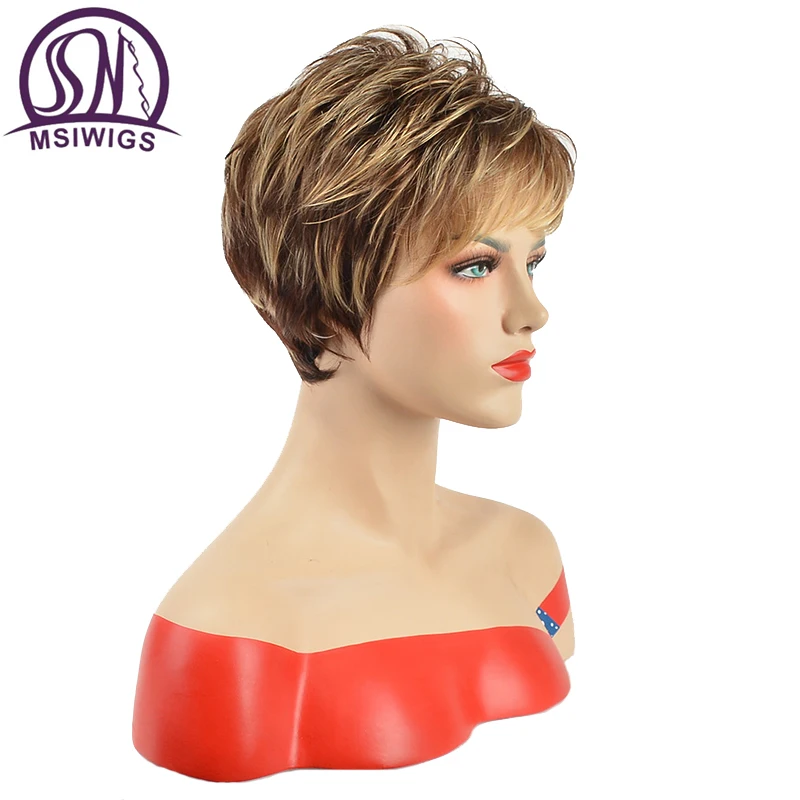 Best Seller MSIWIGS Straight Short Burgundy Ombre Wigs with Bangs High Temperature Fiber Synthetic Hair Blonde