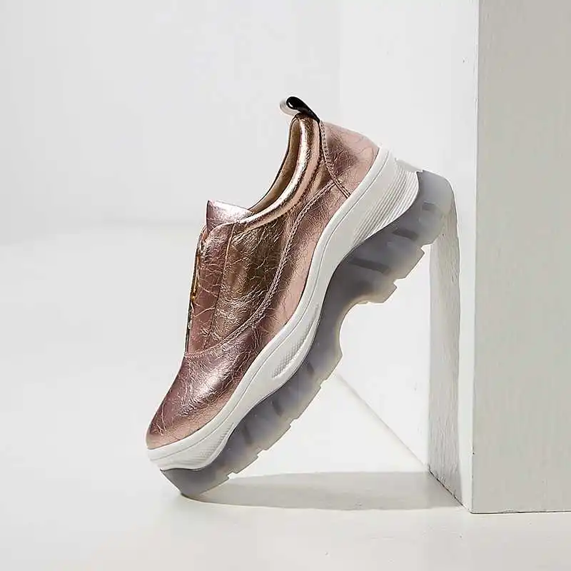 Krazing Pot cow leather metal decoration slip on crystal-studded waterproof sneakers round toe conv
