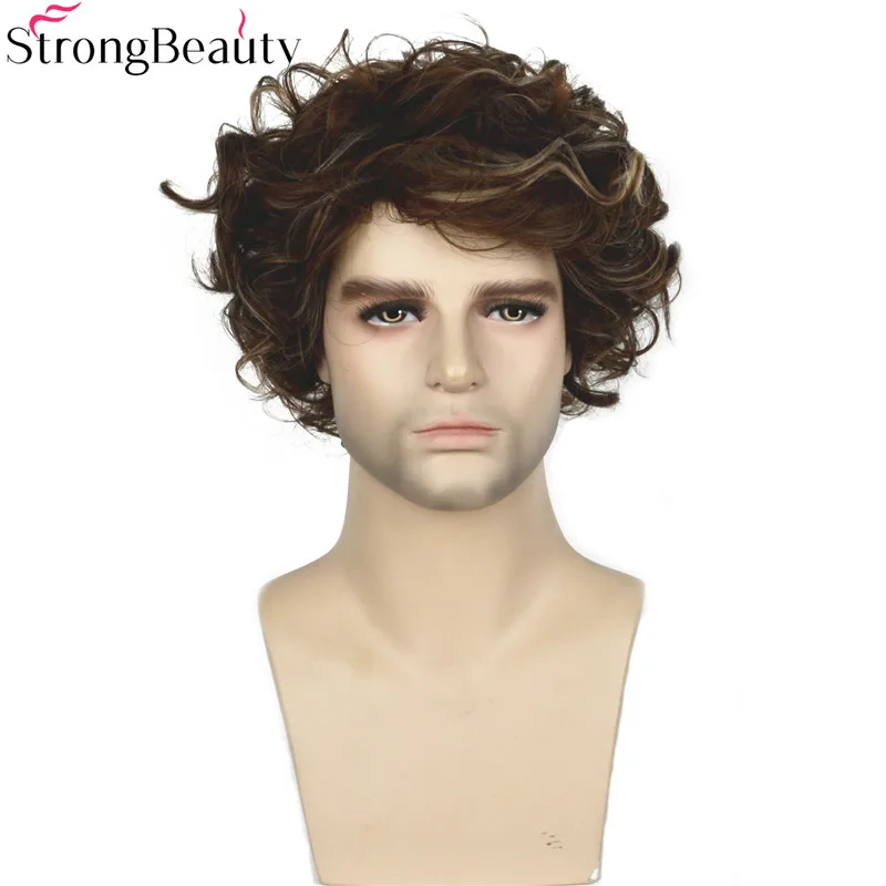 Strong Beauty Short Men Wigs Synthetic Curly Wig Color Mixing Male Hair
