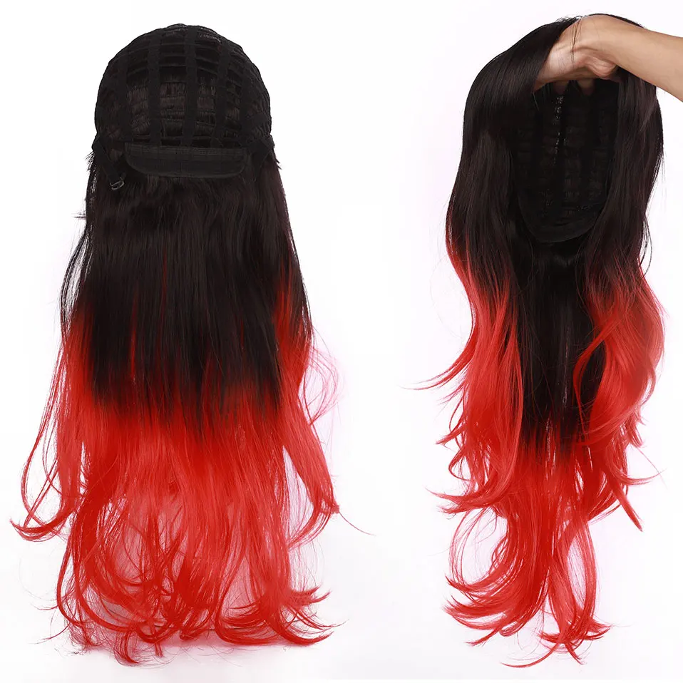 Cosplay Wig Synthetic Long Natural Straight Side Part Line Pink Purple Women Hair Costume Carnival